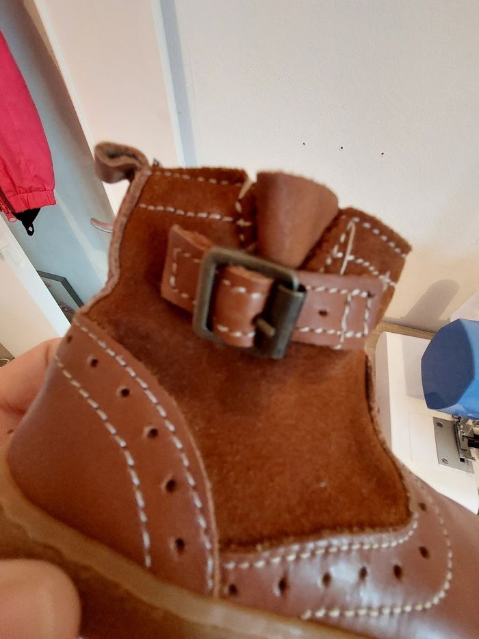 Trace plus foncé sur le côté d'une chaussure. Sinon très bon état. Poiture 20.