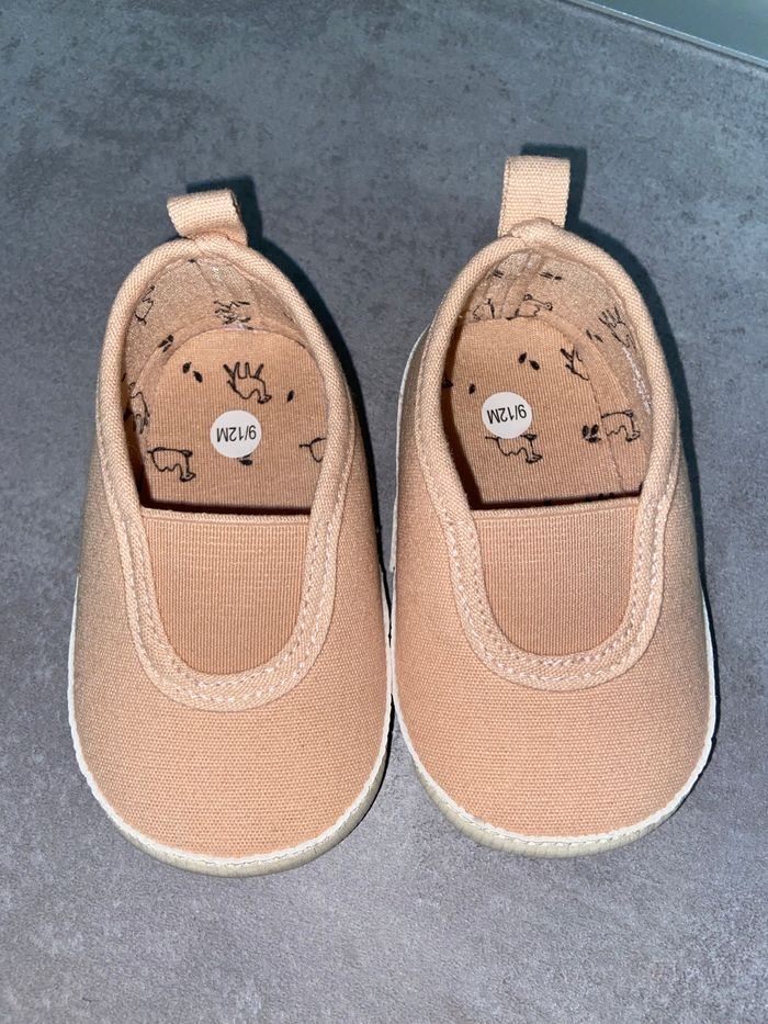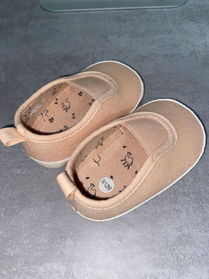 Chaussures bébé rose saumon « kiabi » taille 9/12 mois , neuve sans étiquette.