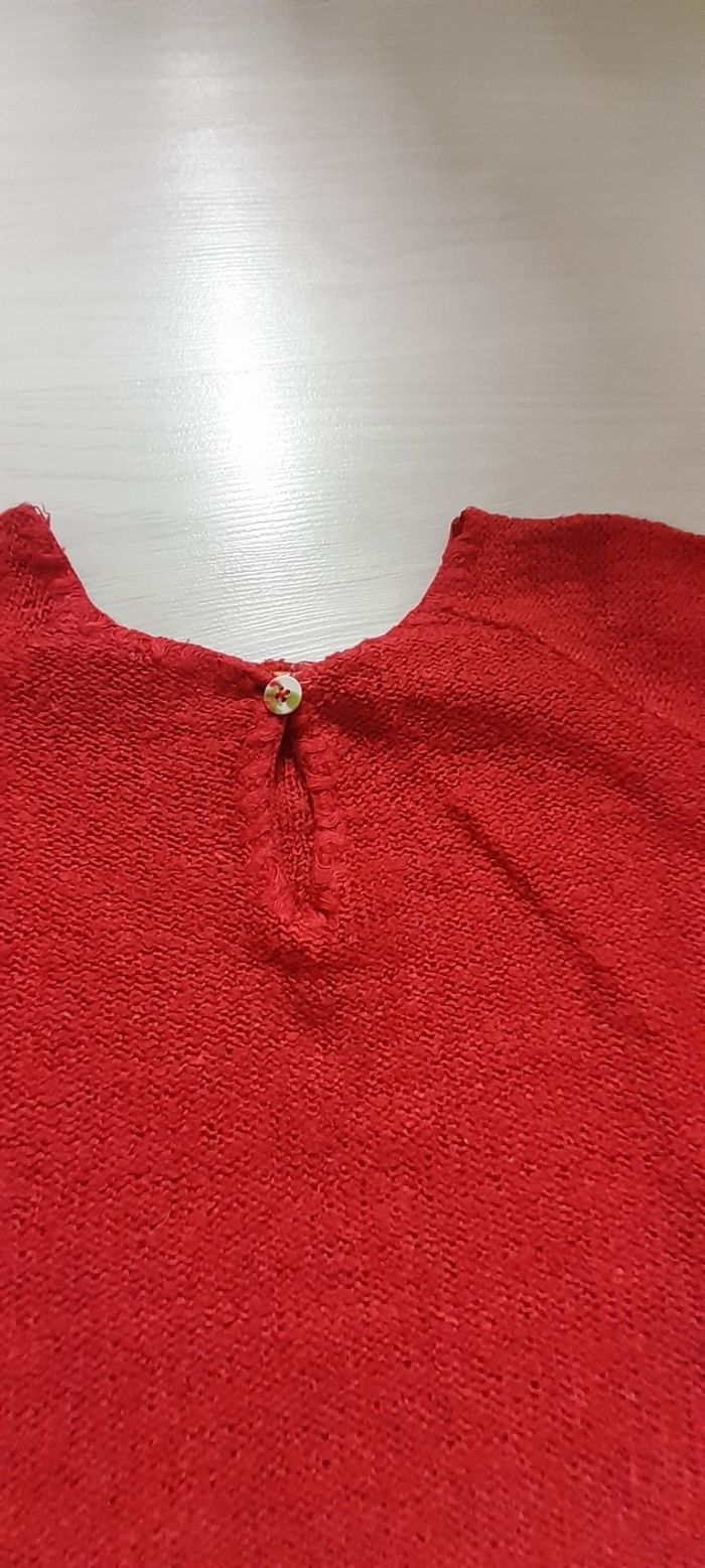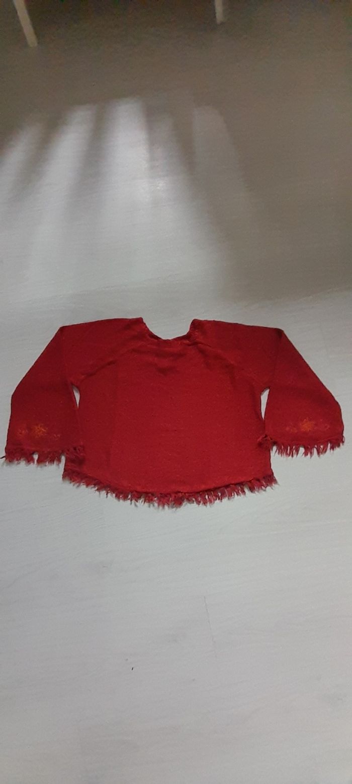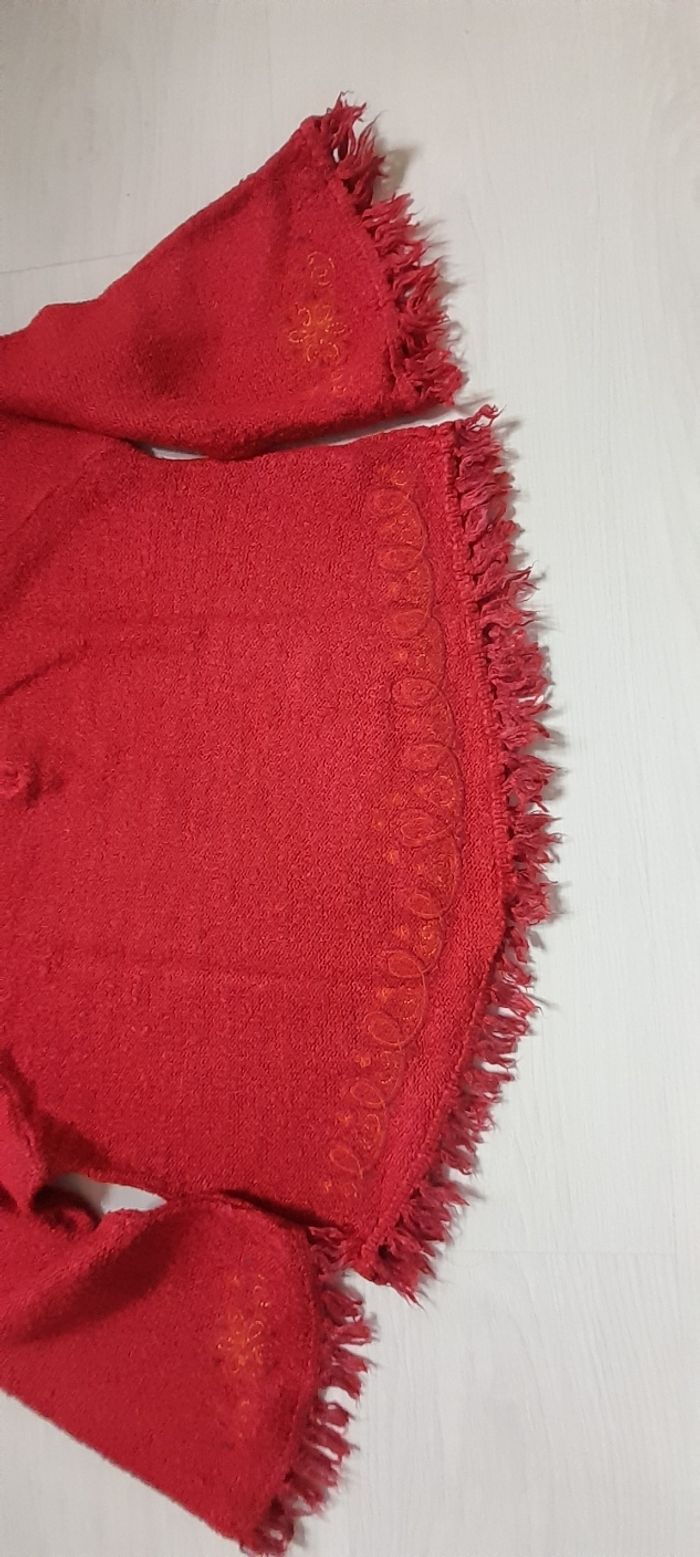 Poncho T 8 ans Marque TAPE A L'ŒIL Couleur bordeaux Motif broder sur bas devant et bas de manches Attache bouton cou devant Très très bon état
