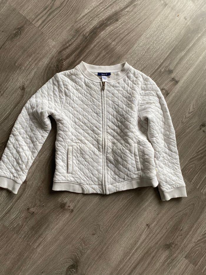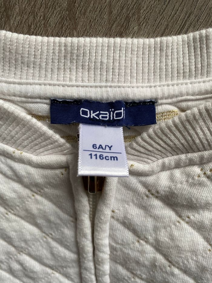 Gilet à fermeture éclair blanc avec des tous petits pois dorés taille 6 ans de la marque Okaidi en parfait état