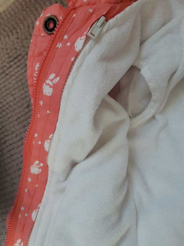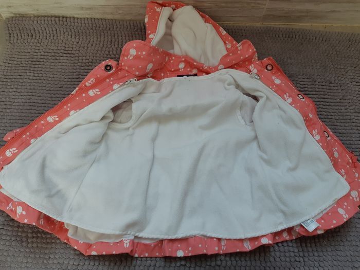 Manteau 2 en 1. Polaire sans manche amovible, ainsi que la capuche. Quelques tâches visibles sur les photos.