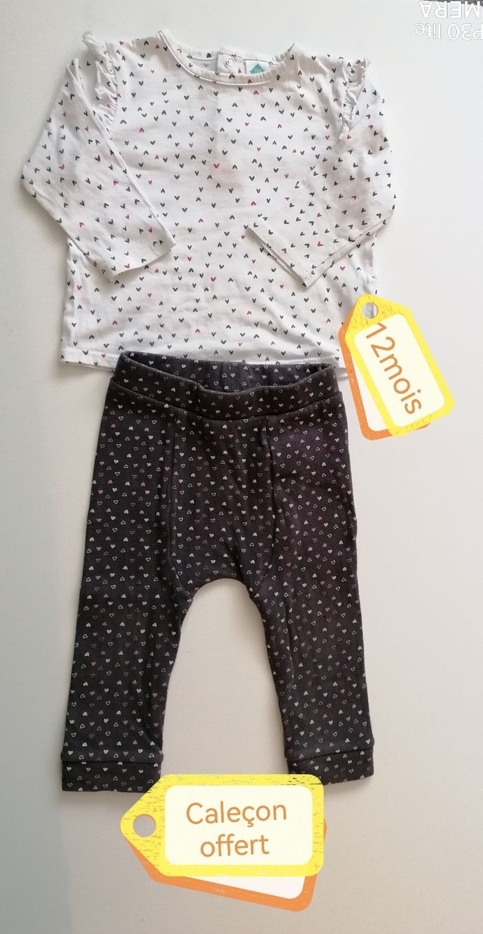 Hauts filles tex baby. 12mois/74cm 100%coton. Porté une fois. (Pantalon :orchestra 12mois offert) 3€