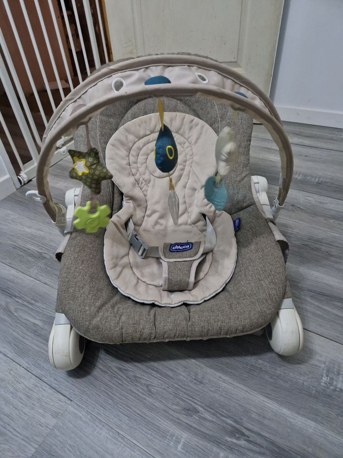 transat confortable et amusant qui suit la croissance de l’enfant et lui permet de se relaxer et s’amuser en toute sécurité.   Il est doté d’un coussin réducteur très confortable pour l'enfant dès la naissance.    Ce même réducteur est amovible pour laisser plus de place dans l’assise à l’enfant lorsqu’il grandit.   L’assise du transat, large et molletonnée, garantit un confort optimal.   Le dossier s’incline facilement sur 4 positions, grâce aux poignées sur les côtés, pour vous permettre de choisir la plus confortable.   Le transat s’utilise en position fixe ou à bascule.   Le transat est équipé d’une barre de jeux amovible dotée du système exclusif et innovant SlideLine qui permet de déplacer les jouets le long de l’arche pour créer chaque jour de nouvelles configurations de jeux.   Tous les jouets sont amovibles et proposent à l’enfant plusieurs activités multi-sensorielles.   Facile à replier grâce à deux boutons à l’intérieur des pieds, le transat devient ultra-compact et facile à transporter grâce aux bretelles de transport.   A partir de 12 mois, le transat peut être utilisé comme fauteuil bébé dès lors que l'enfant sait se tenir assis.   Utilisable de la naissance jusqu’à 18 kg.