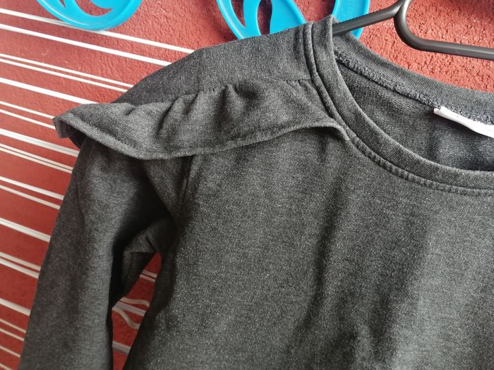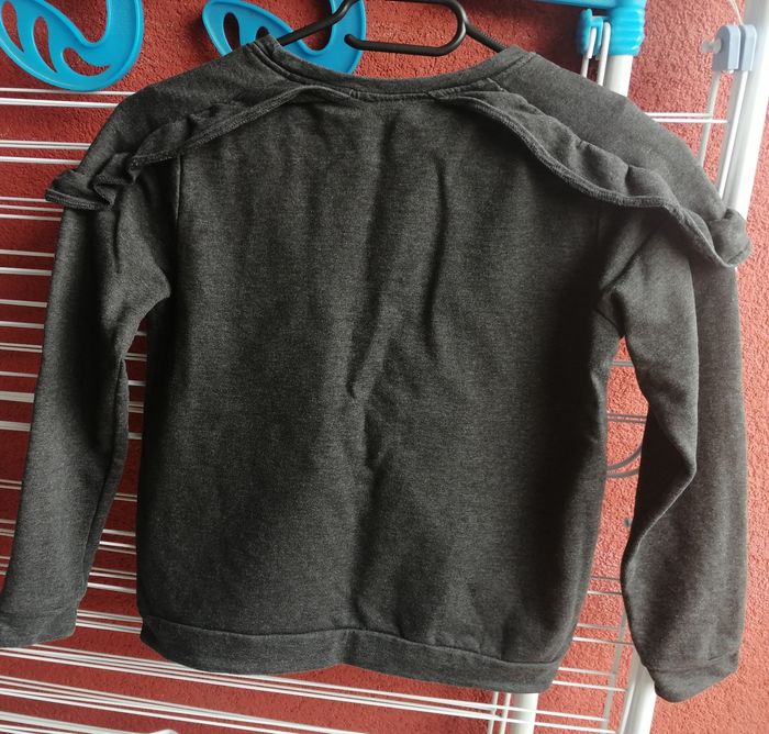 Pull gris foncé, petit détail froufrous aux épaules. De la marque Lili Marelle. Taille 10 ans. En très bon état.