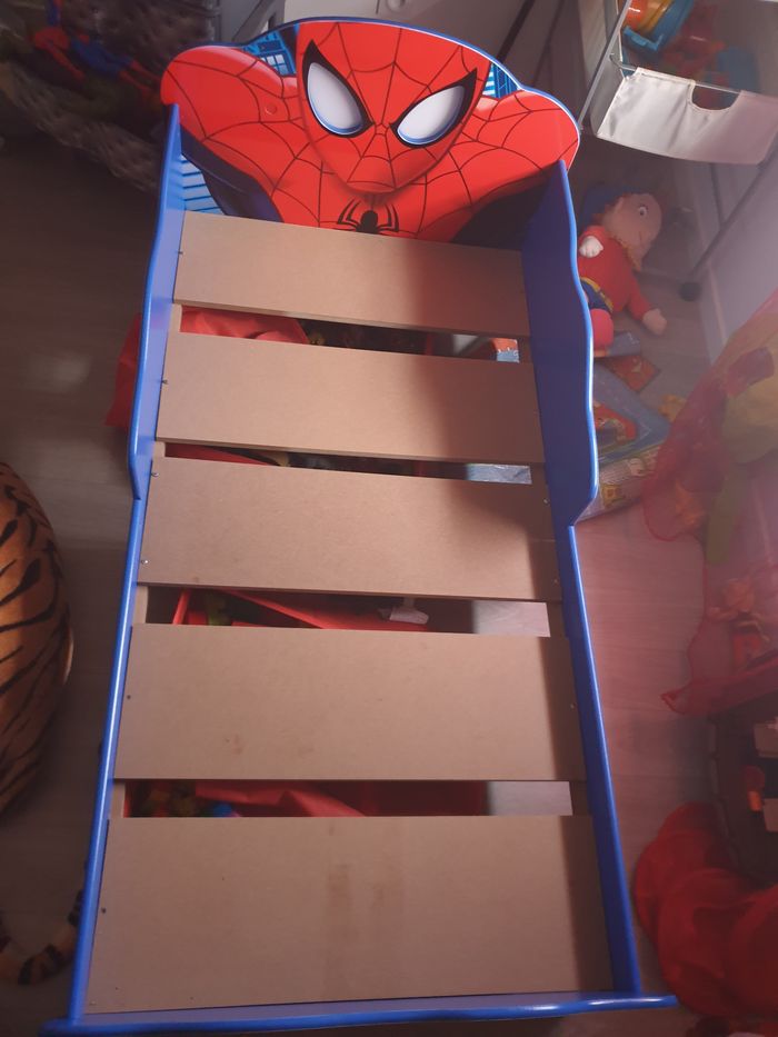 Lit spiderman avec les yeux qui s éclaire + matelas 70x140 Je vend avec 2 protege matelas et 2 tiroirs qui se glisse en dessous.
