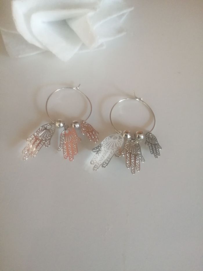 🌸Créoles acier argenté pampilles main de fatma "ikita" neuves 🌸 - photo numéro 3