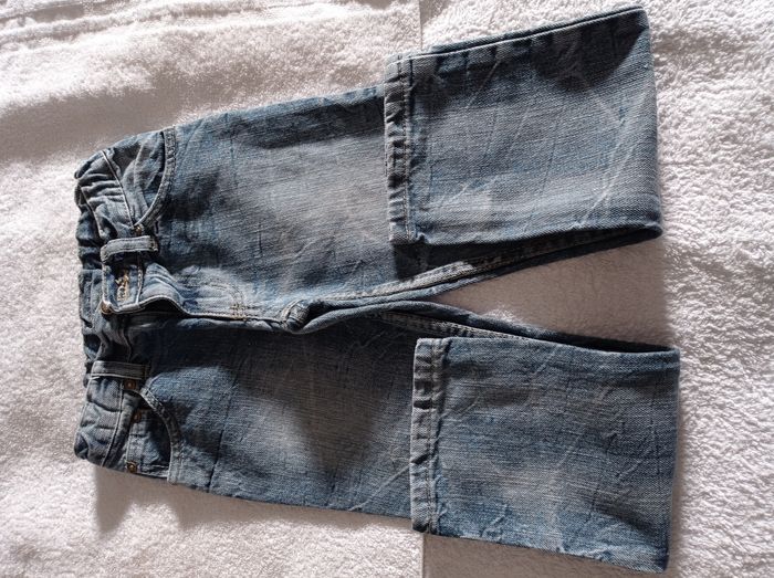 Taille 7 ans pantalon jean bleu ciel réglage à la taille avec bouton sur les côtés
