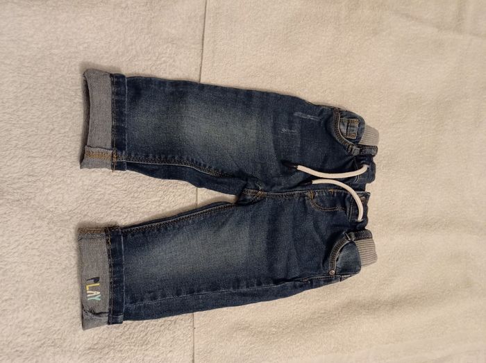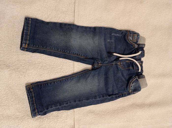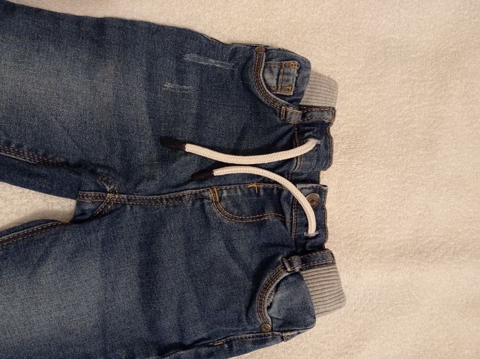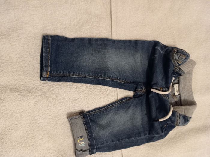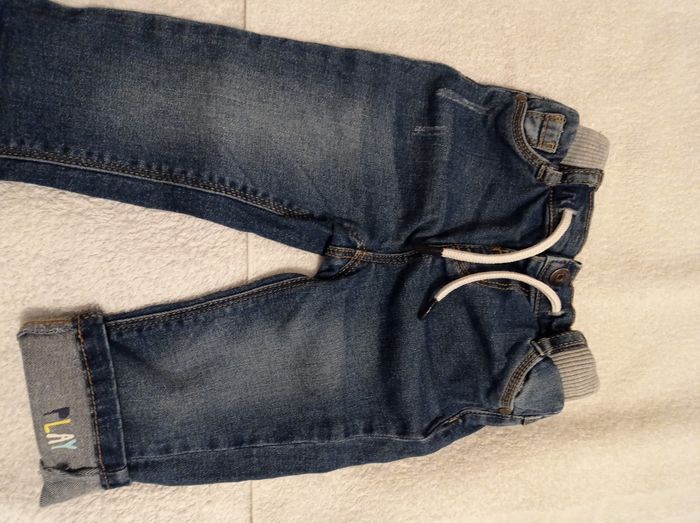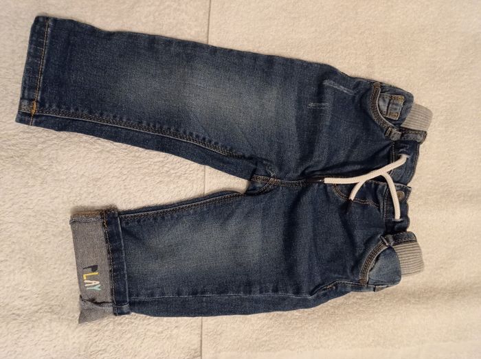 Pantalon jean marque tape à l'oeil 9 mois 71 cm élastique à la taille avec cordon motif en bas du pantalon revers - photo numéro 1
