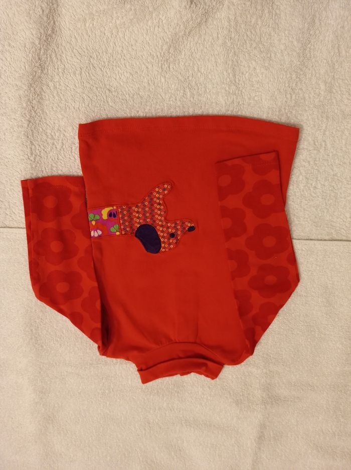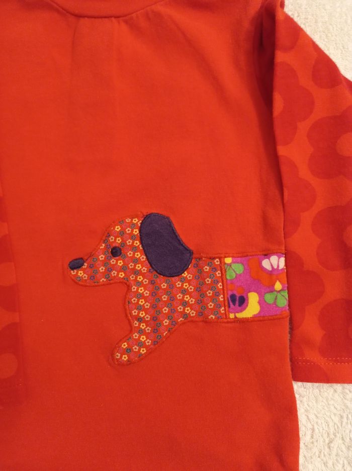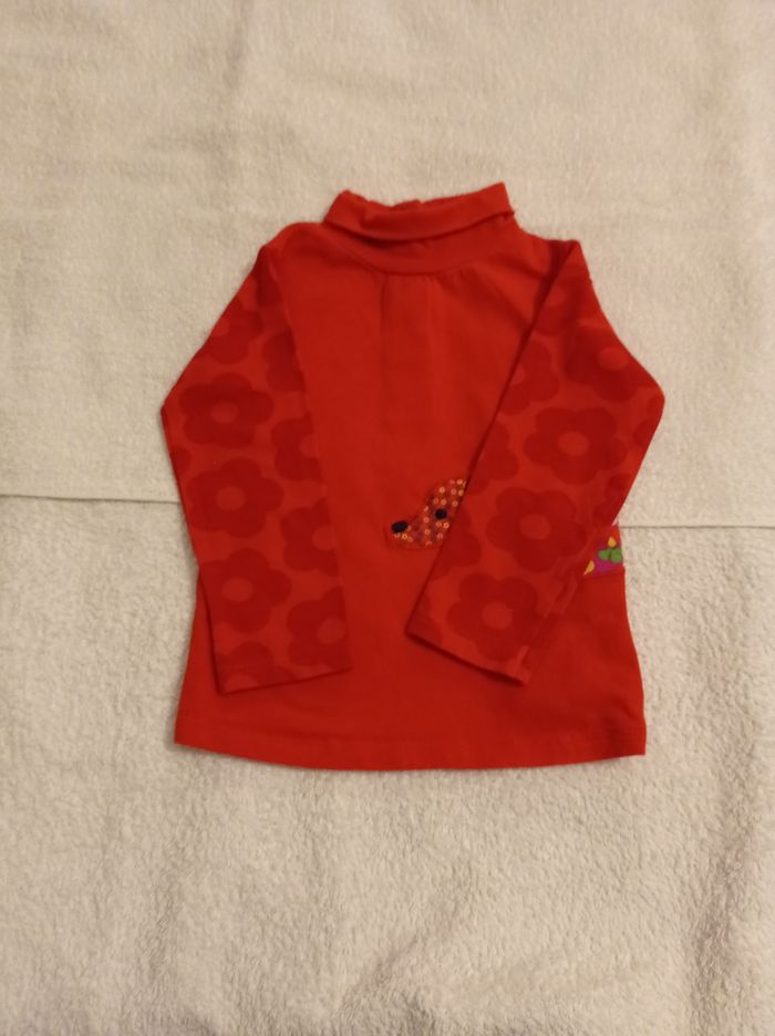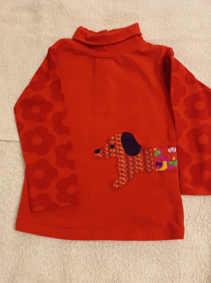 Pull fille col roulé taille 18 mois 80 cm petit chien motif devant manche à fleurs col roulé