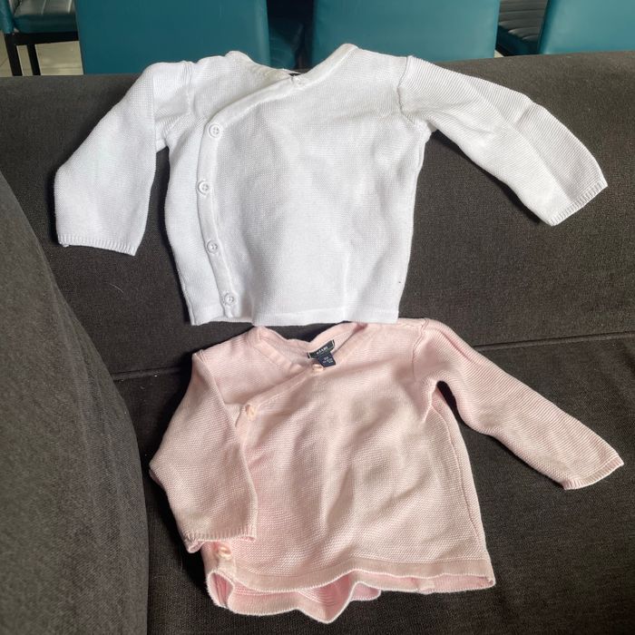 2 pull 1 blanc , 1 rose , fille kiabi taille 3 mois
