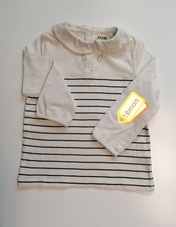 Hauts filles kiabi. 18mois /77-82cm. Manches longues avec élastique.. Petit coll. Blanc /bleu. 100%coton. Porté. 3€