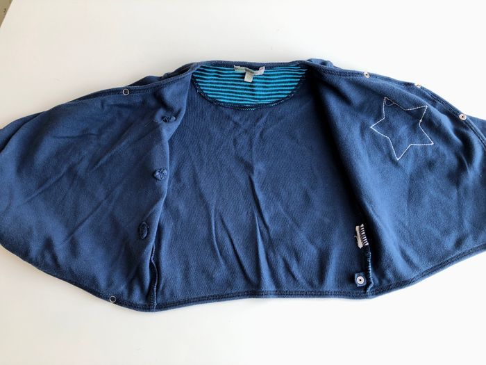 Petit gilet/veste avec boutons pression Bleu marine Tissus bouloché mais bon état général Marque Prémaman