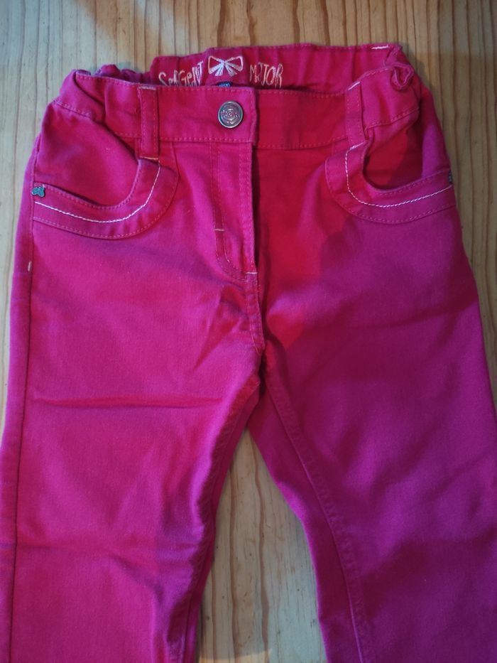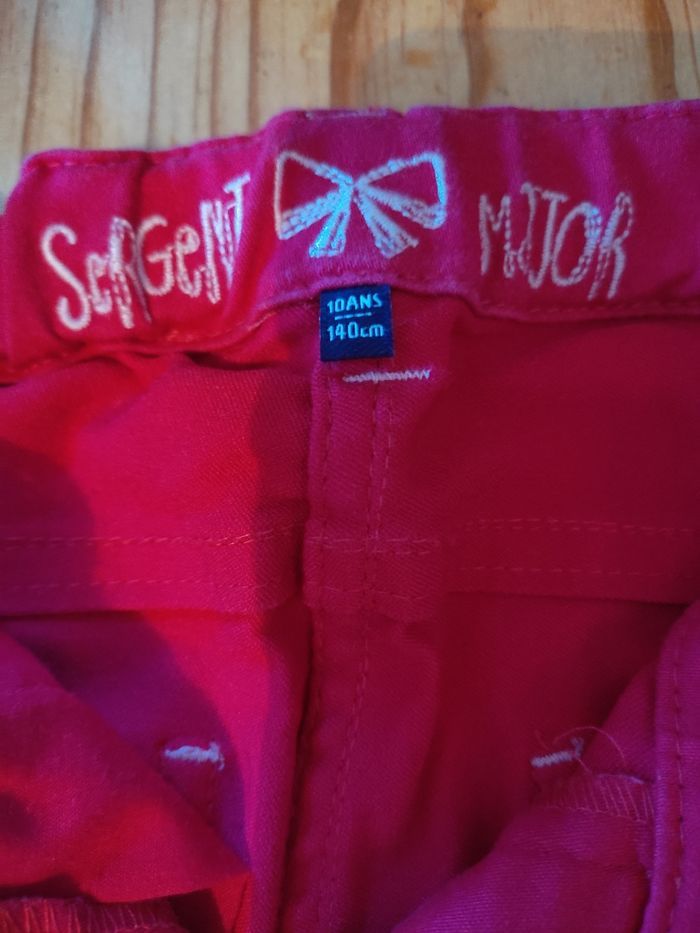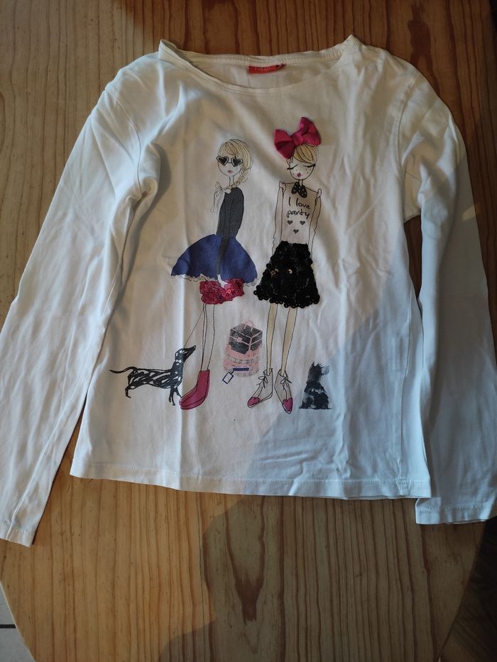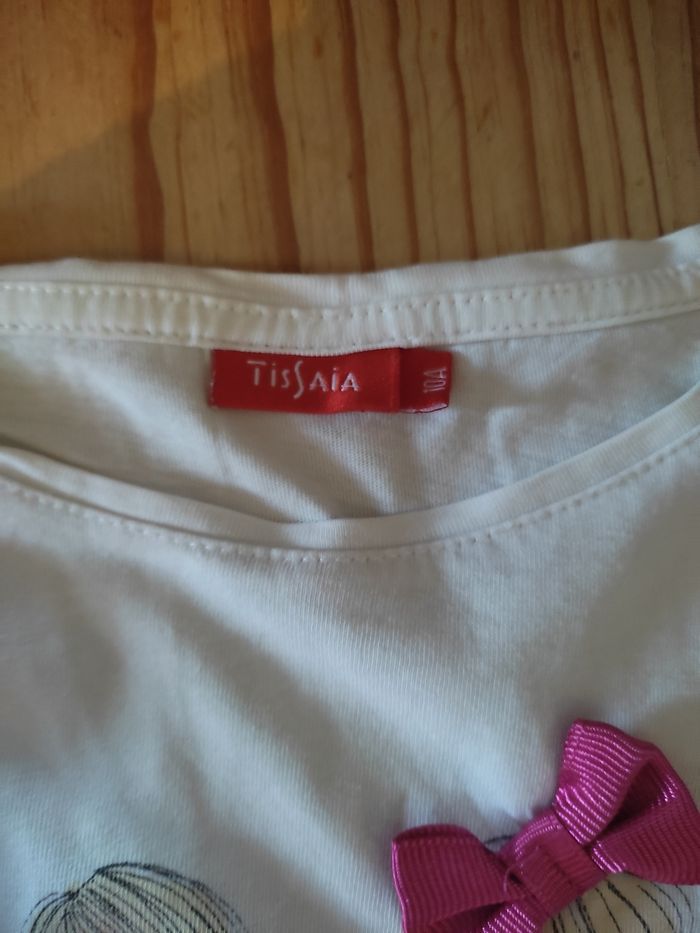 Lot filles 10 ans.(marque Sergent major, tissaia).Gilet rose clair avec noeud devant et petit bouton éléphants. Tee shirt blanc motif. Pantalon fushia avec poche arrière avec motif(voir photo). Lot en bon état sauf le tee shirt qui a un petit trou en bas mais reste discret.(voir photo).Manque un petit coup de fer.😉.