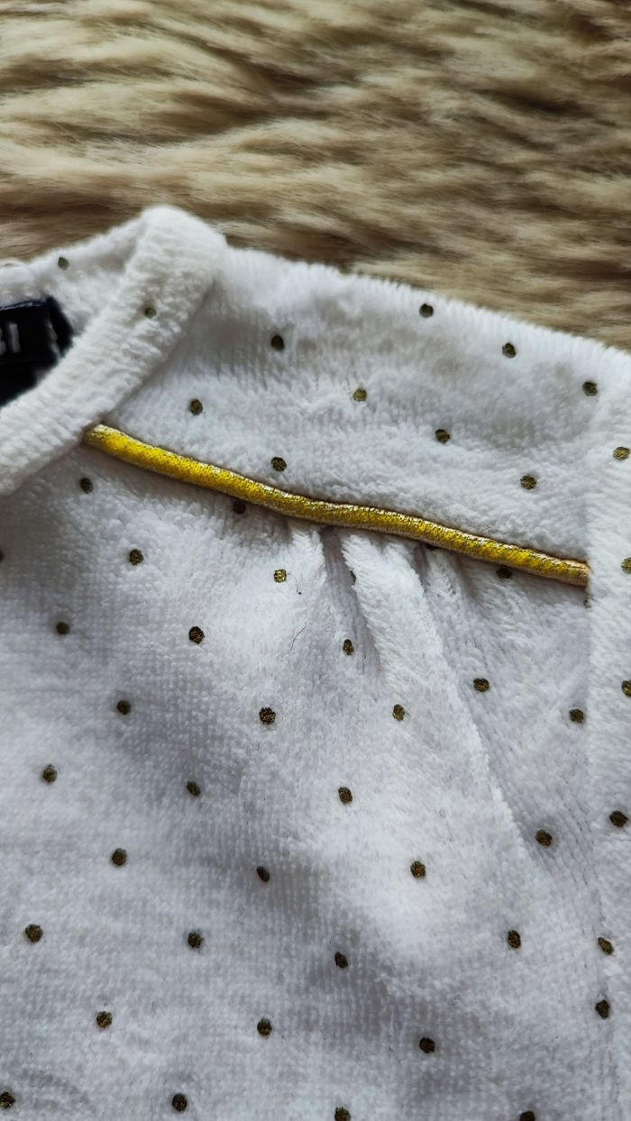 Pyjama chaud blanc avec des pingouins Contours avec fils doré. La couleur s'estompe un peu. De la marque Kiabi En taille 1 mois En bon état maison non fumeur. #laetitia33700filleunmois