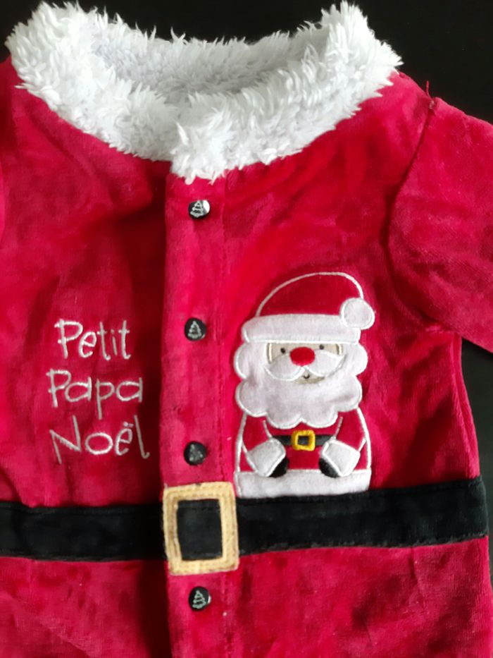 Pyjama velours en très bon état qui se ferme par des pressions sur le ventre.