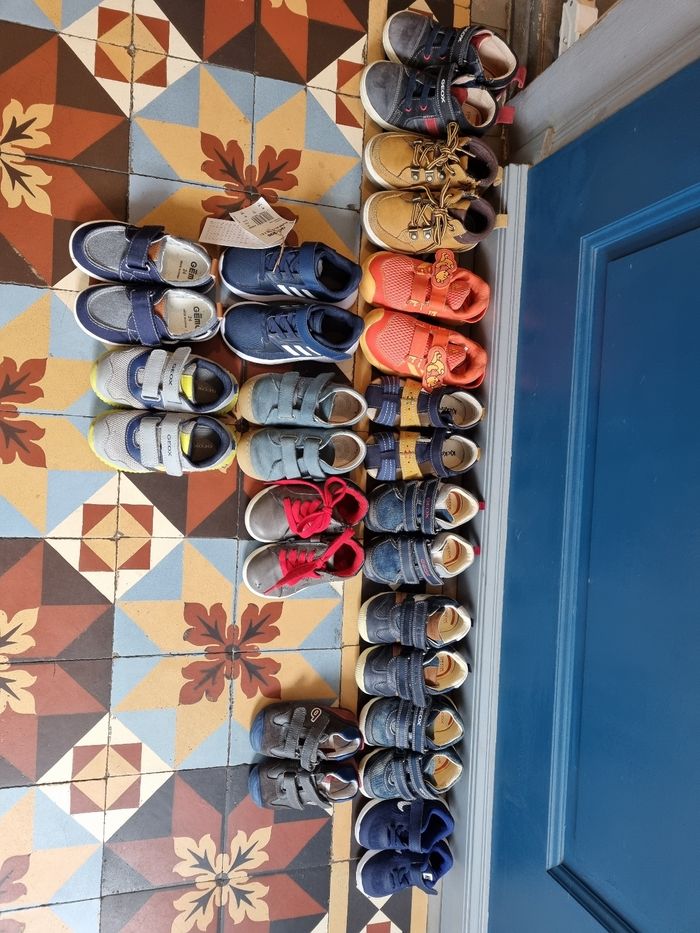 Vend chaussure garçon Du 19 au 25. 6€ la paire ou 75€ le lot. Marque: - adidas - géox - gémo - Bopy - Nike - kikers