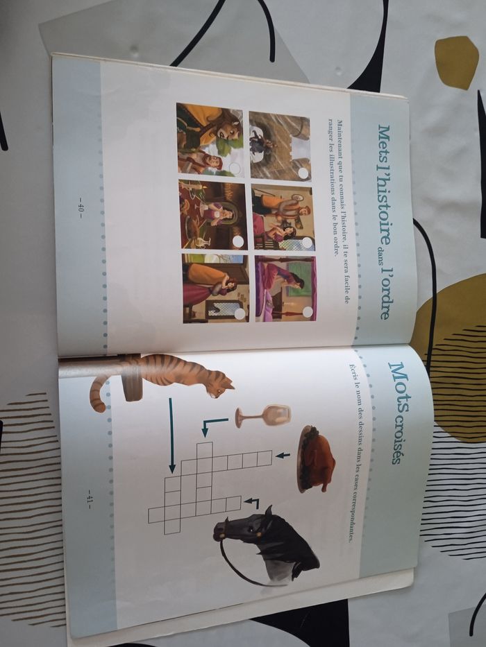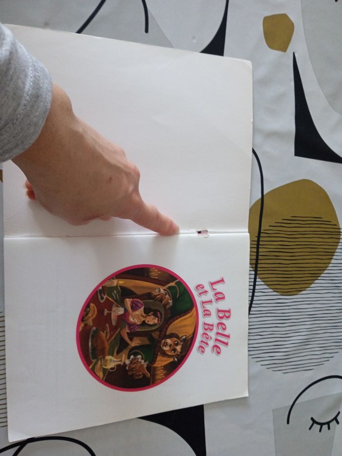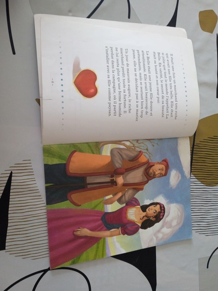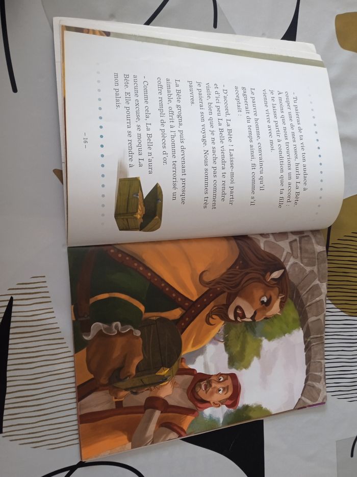 34 pages pour l'histoire la Belle et la bête et à la fin du livre petit jeu qui n'ont pas été fait. La page de couverture est usée et on voit un léger trou (voir photos). Le livre tiens au niveau des agrafes. #livreenfantnade3033