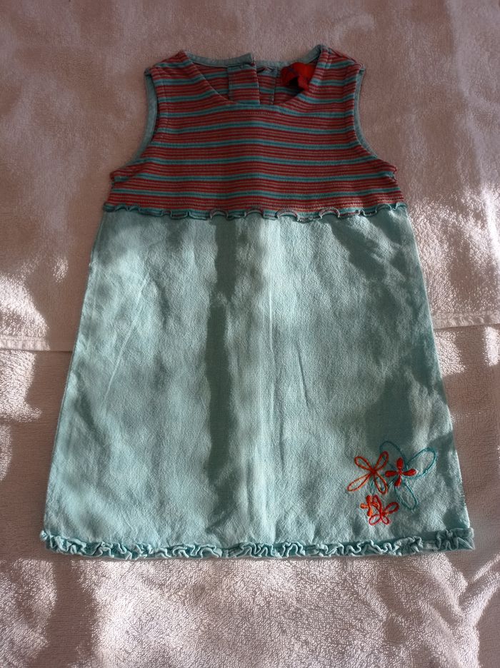 Robe fille bleu clair Léo rayé taille 18 mois Marc à délice bas de la robe petit volant
