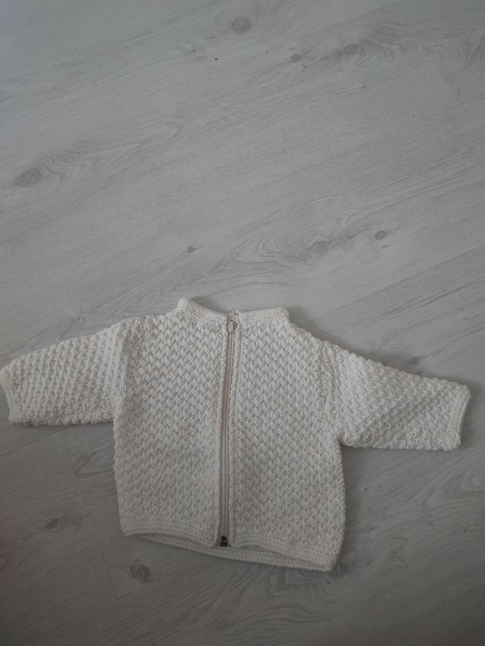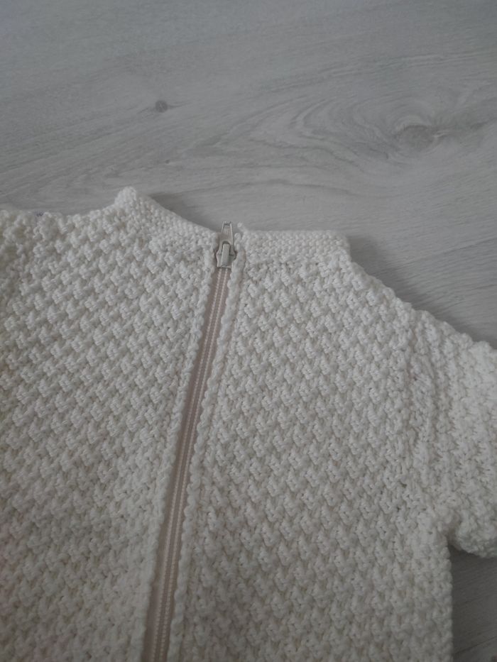 Gilet zippé blanc crème Fait maison Taille 3 a 6 mois