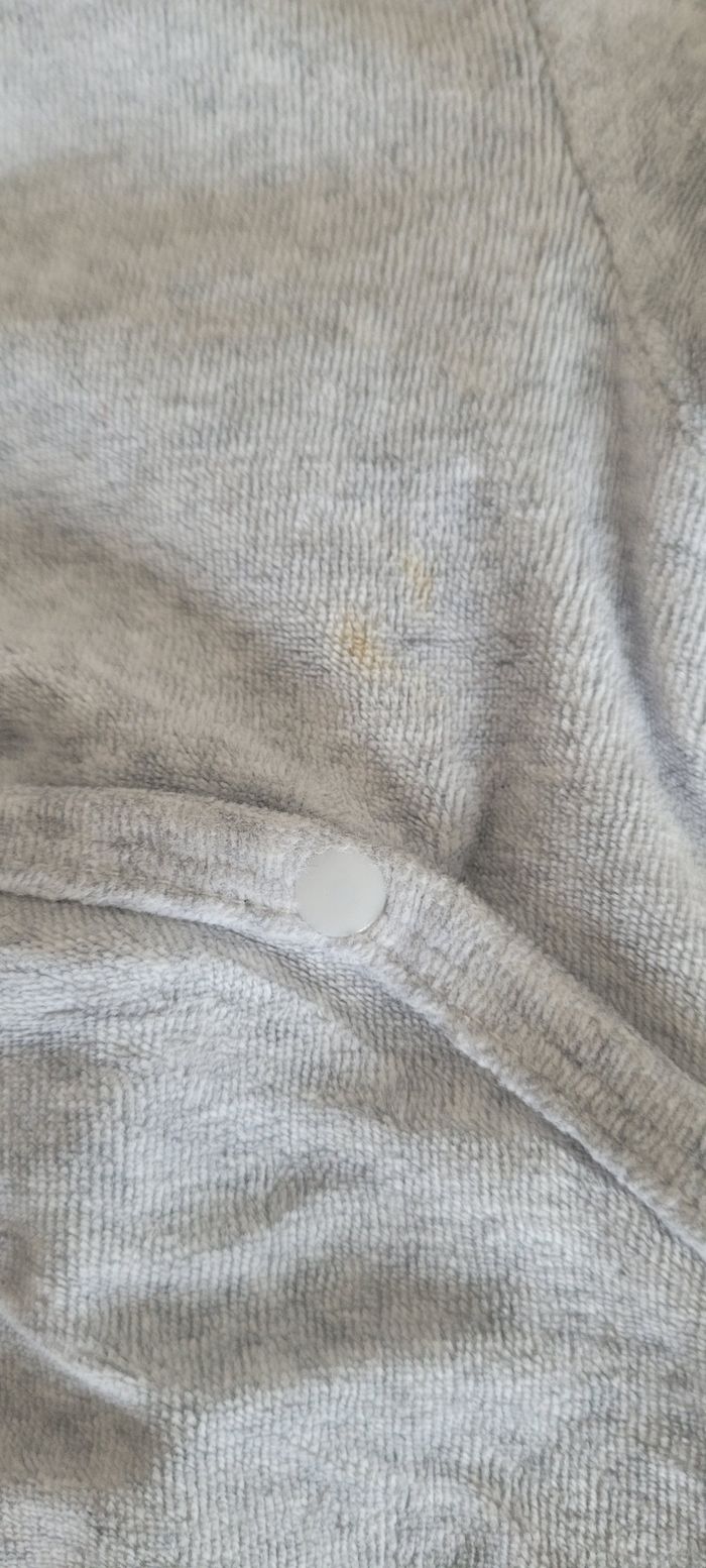 Lot de 4 pyjamas taille 9 mois en bon état général. Le 2 pièces à des pressions intérieures pour tenir les 2 parties du pyjamas ensemble. Voir dernière photo pour trace d'usure sur le dernier.