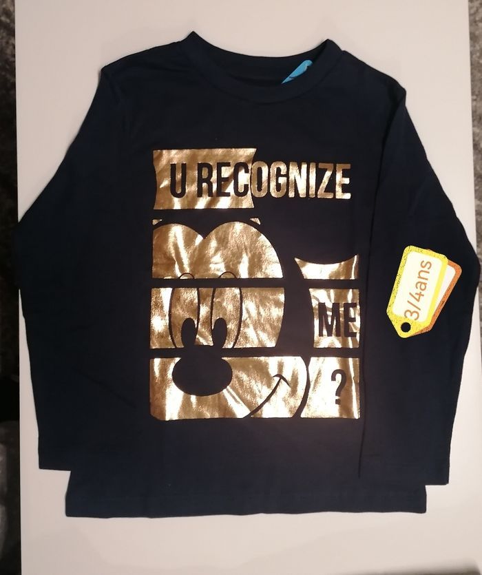T. Shirts Manche longue filles mikey. 3/4ans. 104cm Manches longues. Bleu marine/doré 100%coton. Jamais 6.50€