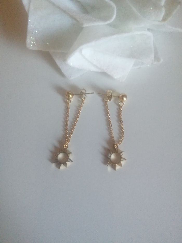 🌸Boucles d'oreilles chaîne dorée et pampille soleil "Zag" 🌸 - photo numéro 2