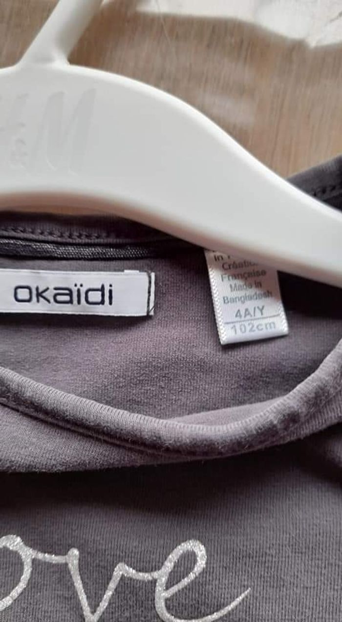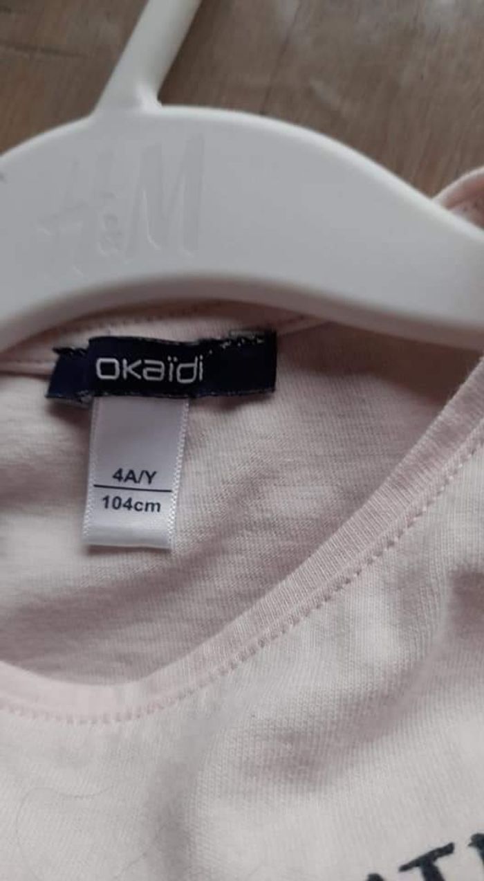 Lot de 4 t-shirts longues manches fille. Taille 104. 2 okaidi, 1 tape à l'œil et 1 palomino. Bon état. Maison non fumeur