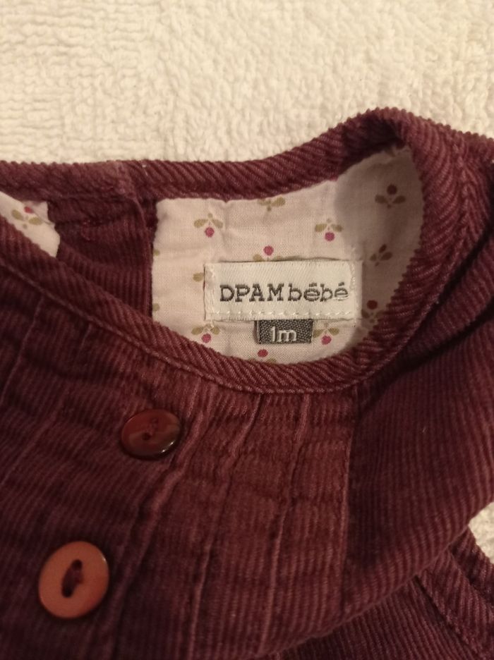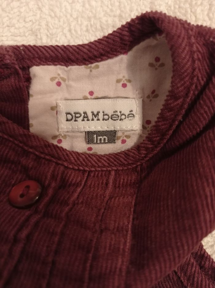 Robe velours doublé fleur taille 1 mois marque DPAM bébé couleur Bordeaux