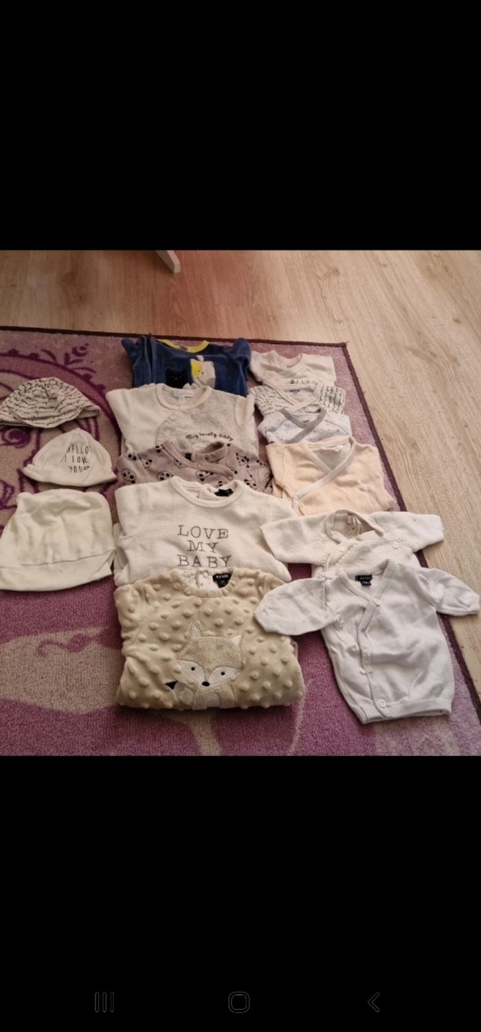 3 pijama 0 mois 2 pijama 1 mois 3 body 0 mois 1 body 1 mois 2 brassières 0 mois 3 bonnet naissance