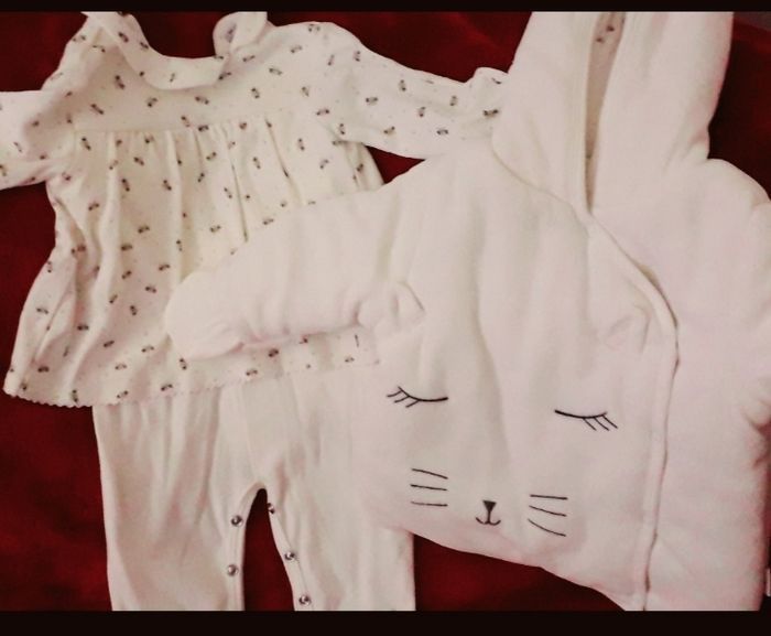 MAGNIFIQUE ENSEMBLE BLANC VELOURS BB FILLE 👧 3 mois 56-62cm....