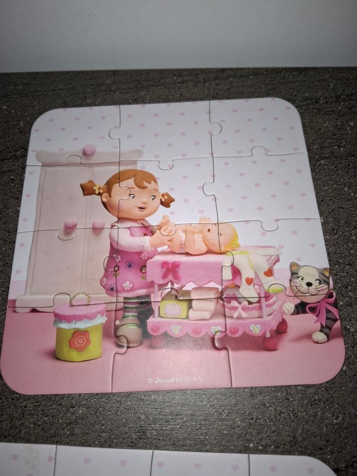 Valisette 4 puzzles Janod Lilou joue à la poupée