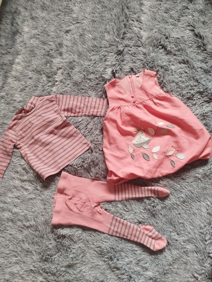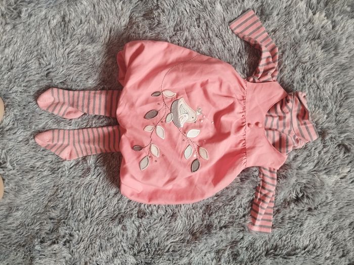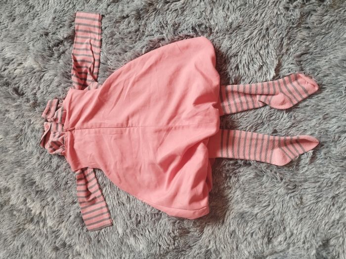 Ensemble rose et gris 6M comprenant 1 robe, un haut à manches longues et un collant. Je met en bon état car il y a des bouloches