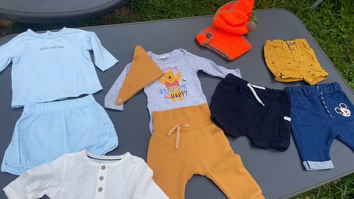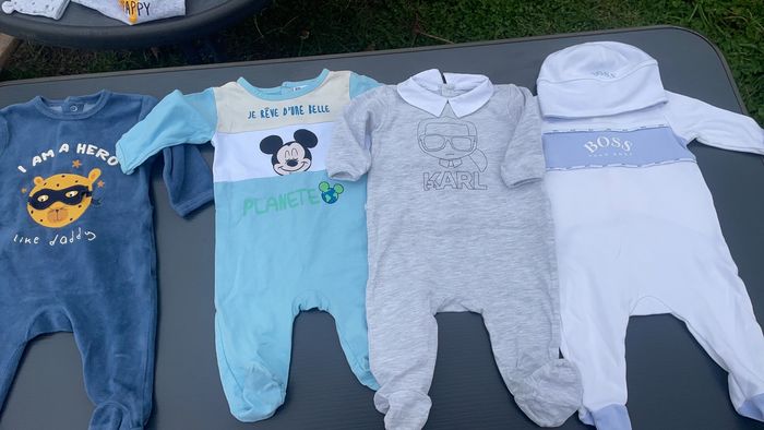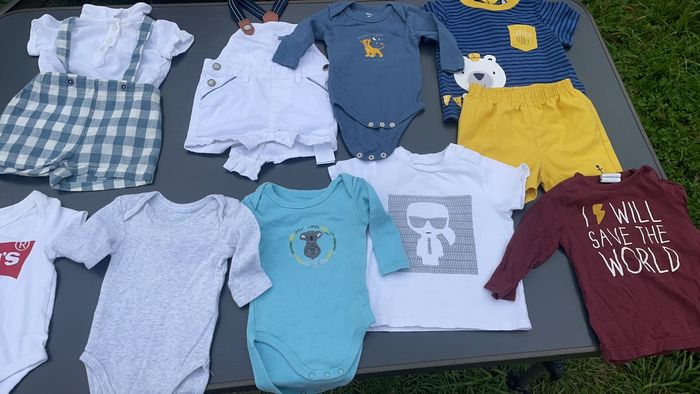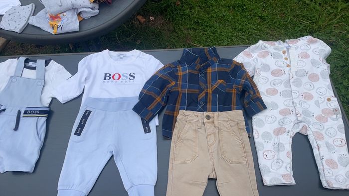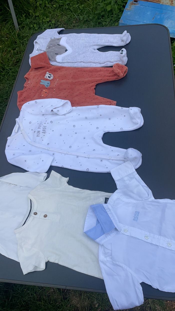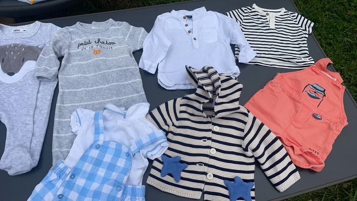 Bonjour vend vêtement garçon 3 mois et 6 mois tres bonne état les ensembles sent a 10 euro pièce et les ensembles de marque sent a 25 euro pièce les pijama 5 euro pièce