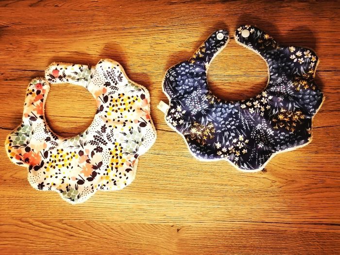 Création de bavoir forme de fleur avec pression double en éponge bambou. N'hésitez pas à me contacter pour plus d'informations et avoir le votre. Plusieurs tissus disponibles. Made in france 🇫🇷Handmade by BabyDolls création