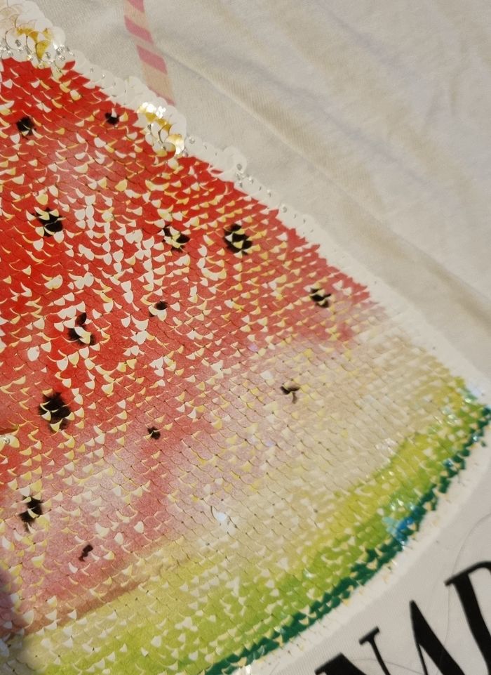 t-shirt h&m à frange blanc avec pastèque en sequins taille 10/12ans - photo numéro 4