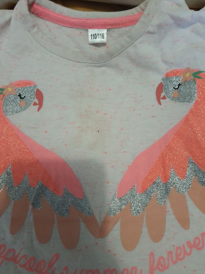 Pyjama short imprimé flamant rose 4 ans quelques taches ne sont pas parties à la machine