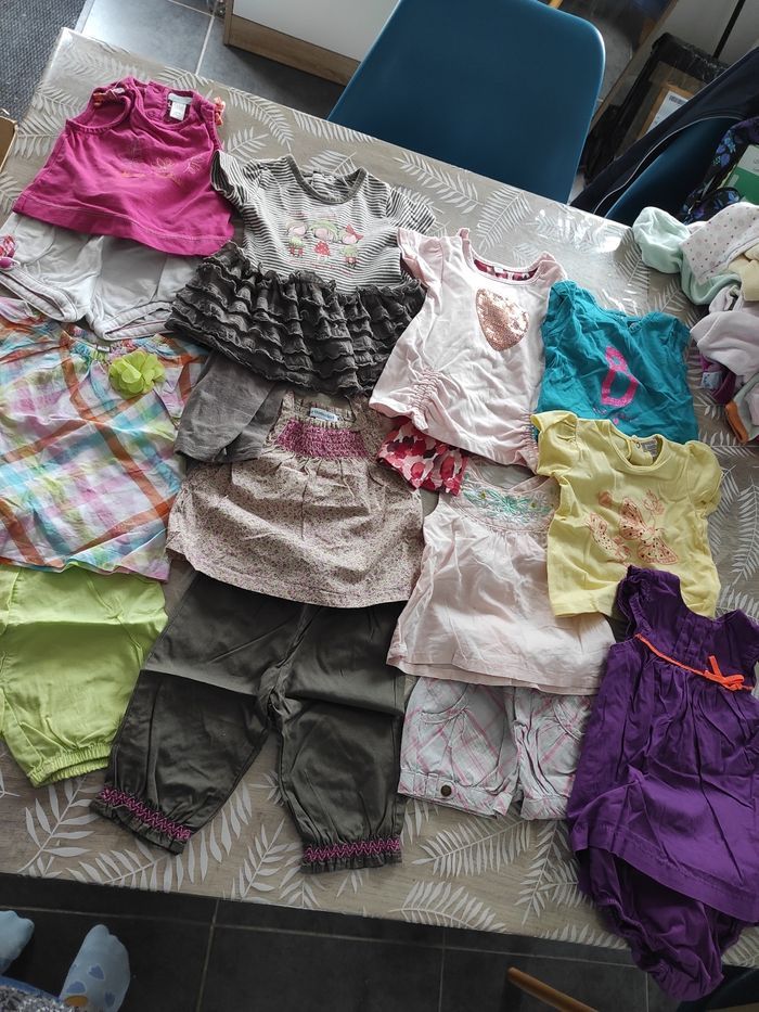 Lot 6 ensembles, 2 t shirts et une robe en 3 mois