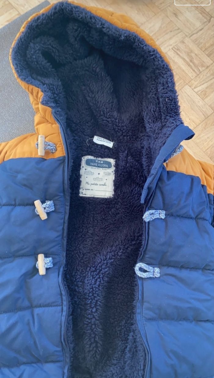 Combinaison pilote idéale pour promener bébé lorsqu’il fait froid Très peu portée Très bon état Intérieur polaire Taille 3/6 mois Couleur bleu et camélia