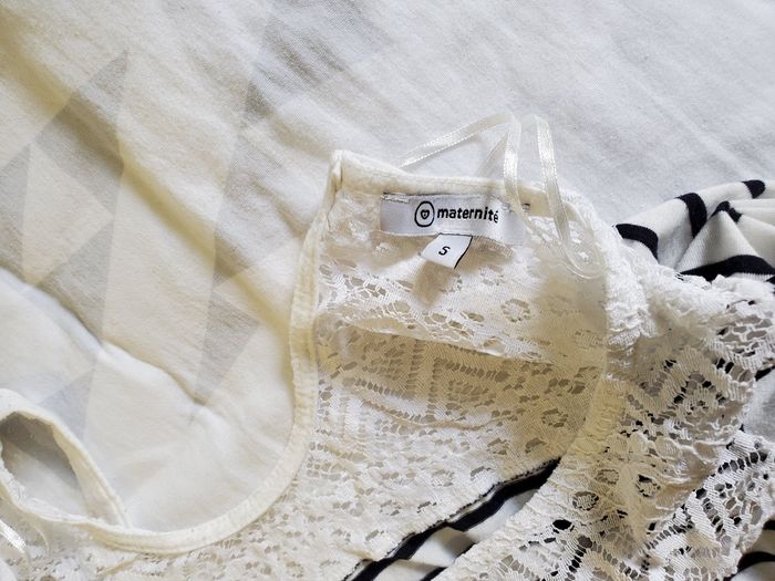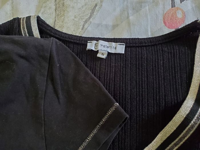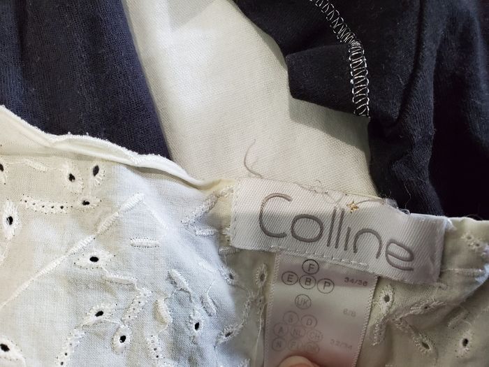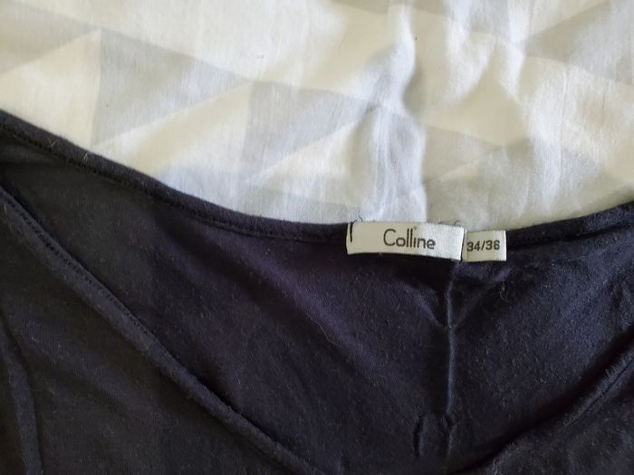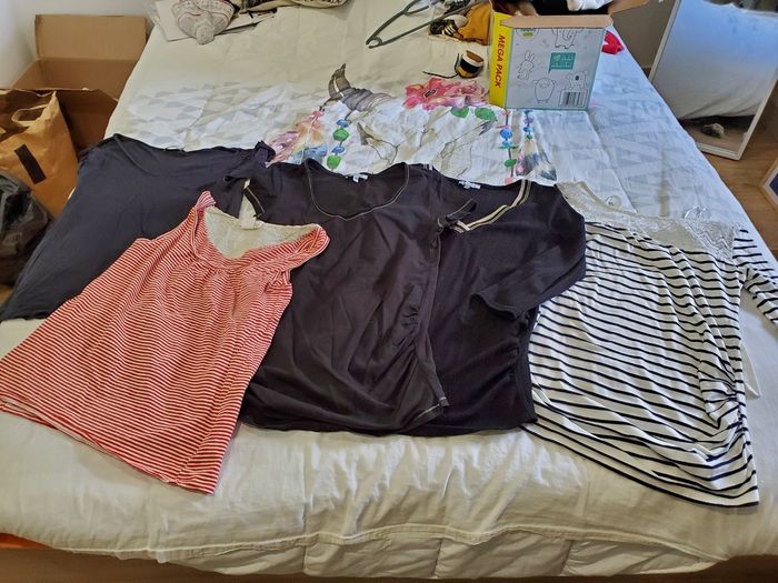 5 hauts : marques Collines et Gemo 1 Jean Kiabi Jean en parfait état Les hauts ont de très légères boulot bouloches du au lavage. Le haut rayé rouge a un peu perdu de sa couleur ainsi que le t-shirt basic colline.