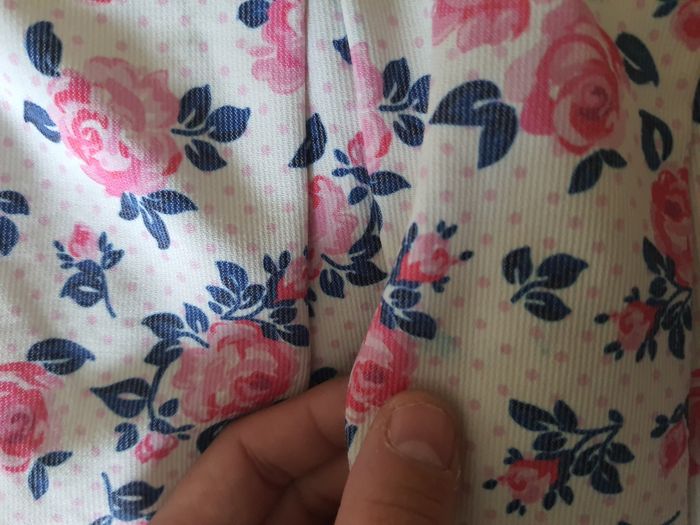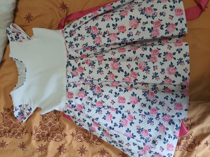 Robe imprimé roses en taille 4 ans. Il y a 2 taches bleues