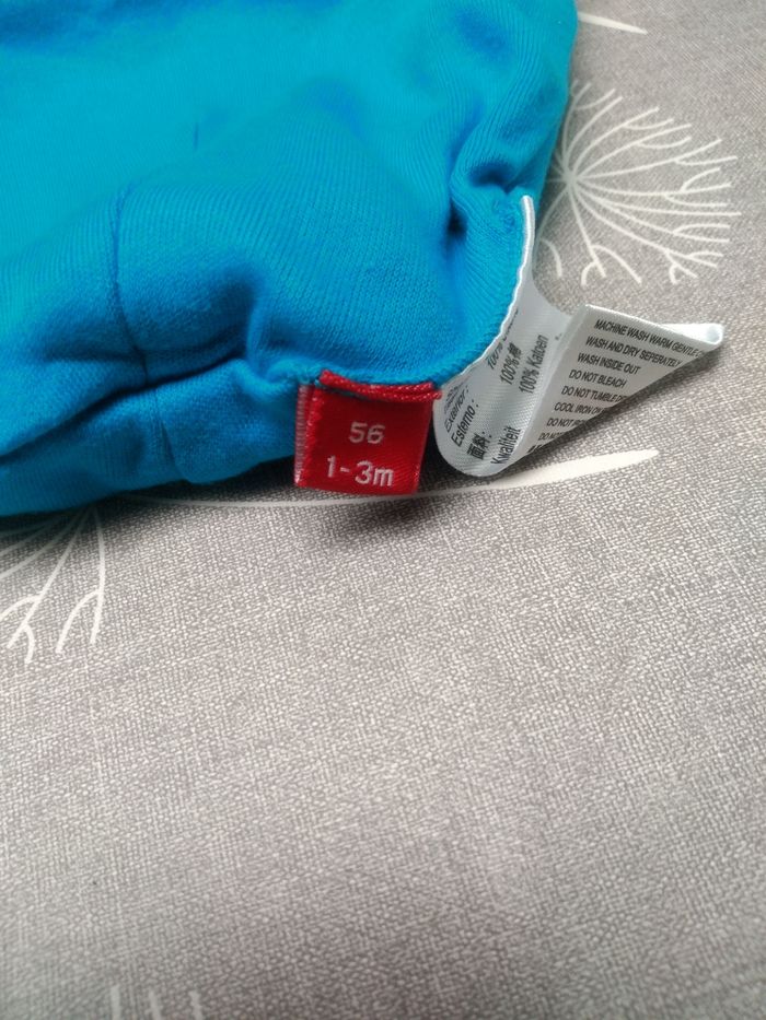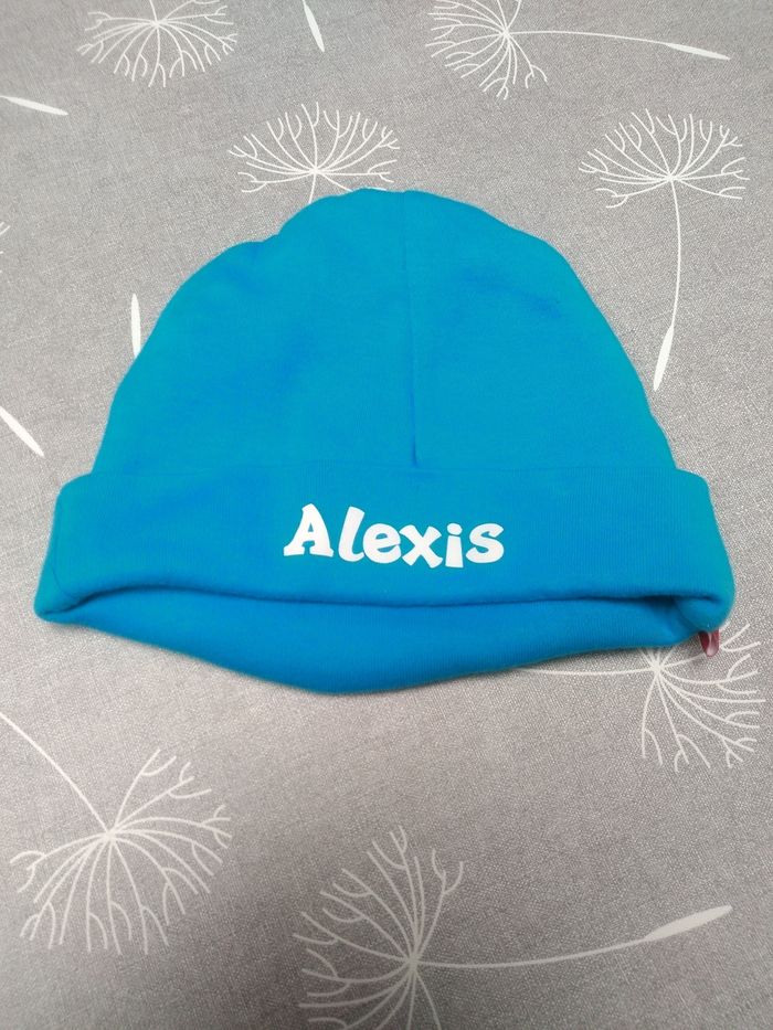Bonnet bleu "Alexis". Taille : 1-3 mois, 56. Etat impeccable. Bac 9