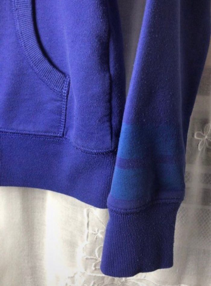 Gilet à capuche 2 tons de bleu 2 poches taille S Kiabi carrure 36,2 cm largeur à plat sous les bras 44,5 longueur 57,5 cm