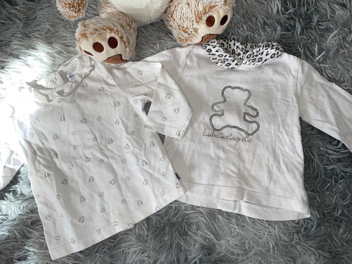 Manches longues Bon état ( 1 taché , l’autre 1dessin d’enlever ) 6 mois Lulu castagnettes