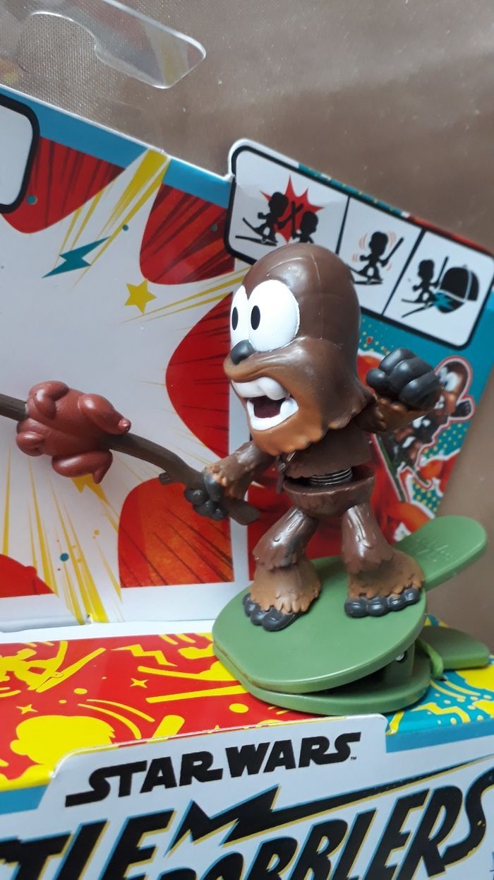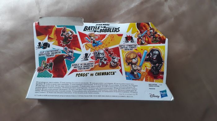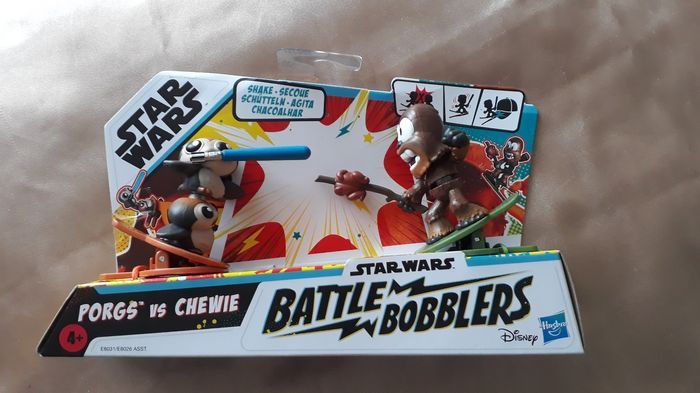 Battle bobblers - Star Wars Porgs VS Chewbacca Des rivaux emblématiques et des couples inattendus s’affrontent dans les nouveaux Star Wars Showdowns ! Ces personnages de Star Wars sautillants, montés sur ressort, sont vendus en packs de 2, ce qui permet aux fans de créer des scènes de duels géniales dès l’ouverture de la boîte. Emporte la bataille avec toi : les pinces fixées au socle de ces figurines permet de les exposer dans des endroits inattendus, sur un chapeau, un calepin ou encore des lacets. Hasbro 4 ans et + NEUF 10 euros #picolo354jouetsenfants #picolo354figurines #picolo354StarWars #picolo354disney
