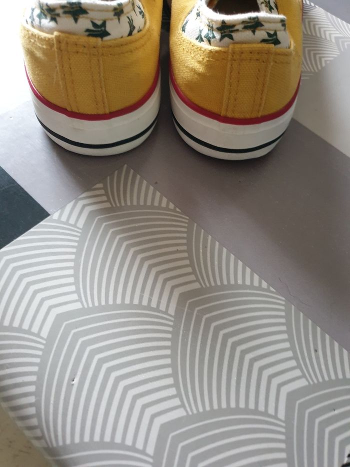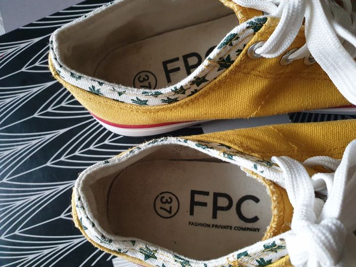 Jolie chaussure en toile jaune et blanc de marque fashion private company taille 37 très bonne état