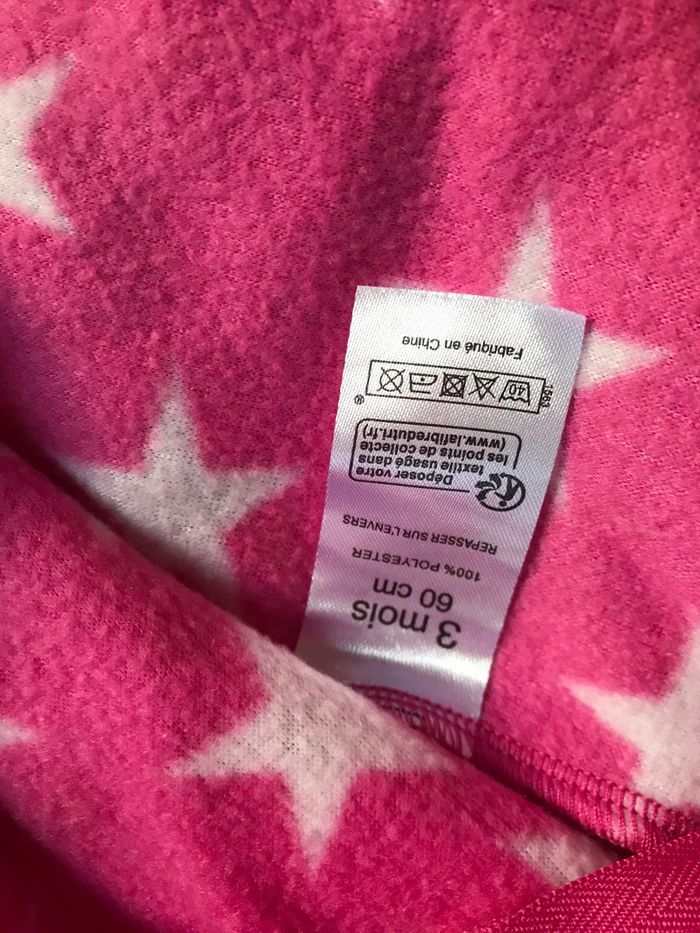 Pyjama polaire fuschia étoiles blanches Fermeture devant Taille 3 mois 60 cm