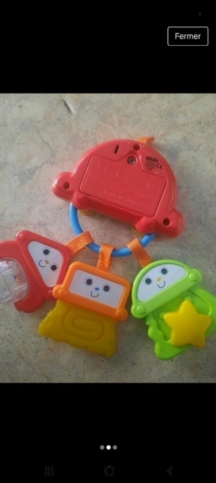 Hochet clé de voiture, avec différents sons. Fonctionne mais piled à changer. Très bon état. Marque Bruin.