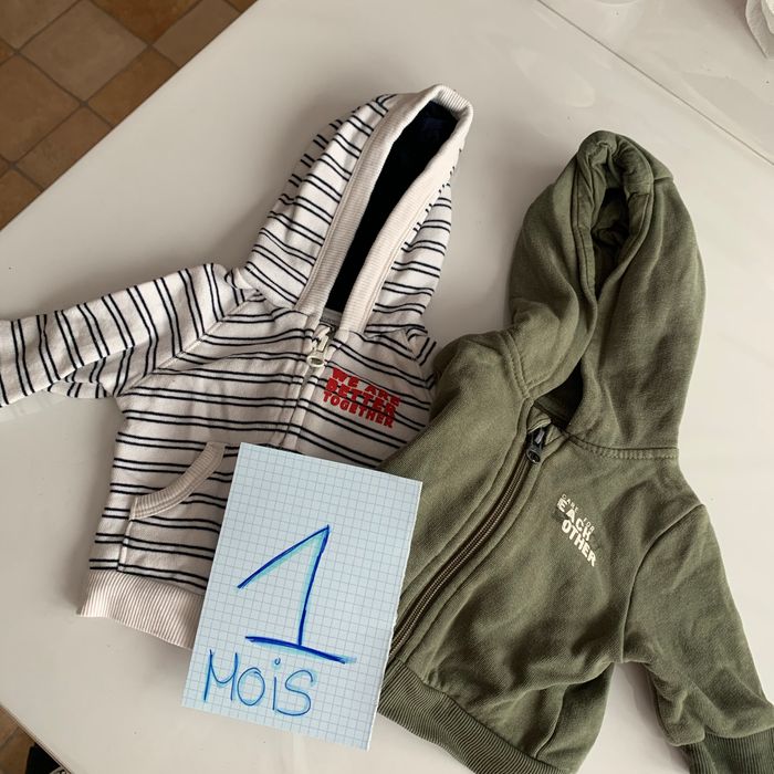 Bonjour je vend un lot de 2 vestes en taille 1 mois
