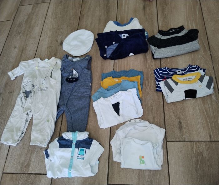 Possibilité d'acheter à l'unité 1 casquette 1 t-shirt manche court 3 tshirt manche court 2 t-shirt 0 mois 1combishort 2 Salopettes 2 bodys manche court 2 pyjamas 1 pièce