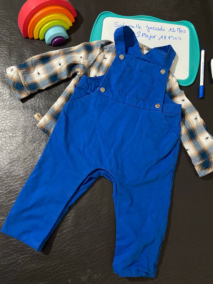 Ensemble comprends Salopette jacadi 12 mois Chemise doublé sergent major 18 mois (taille petit) 12 mois pour l’ensemble